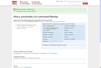 El registro en Meetup es muy sencillo. Sólo tienes que dar un nombre real, una dirección de email válida, una contraseña y una ubicación aproximada para que la aplicación te sugiera grupos cercanos. Hecho el registro, podrás elegir entre una serie de categorías, y te serán notificados los nuevos grupos y quedadas.